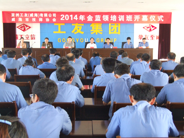 9月13日,亞洲工友(威海)有限公司、威海市技師協(xié)會2014年金藍領培訓班開幕儀式在公司技術樓四樓會議室舉行,威海市勞動和社會保障局、威海市技師協(xié)會、威海職業(yè)技術學院等相關領導以及公司木機事業(yè)部總經理董品洲出席了開幕儀式。